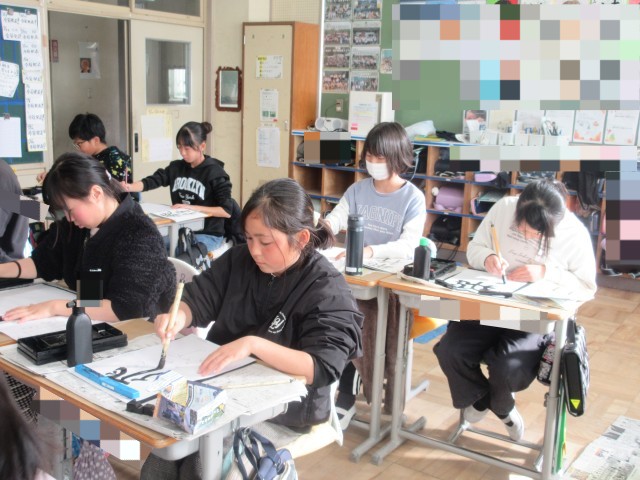 5年生が書写で「飛行」の練習をしています。