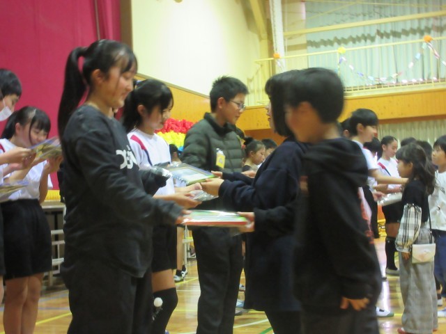 全校のみんなからのプレゼントを渡す時間では、6年生の笑顔がたくさん見られ、とても温かく良い時間となりました♪