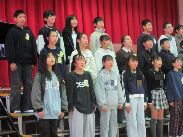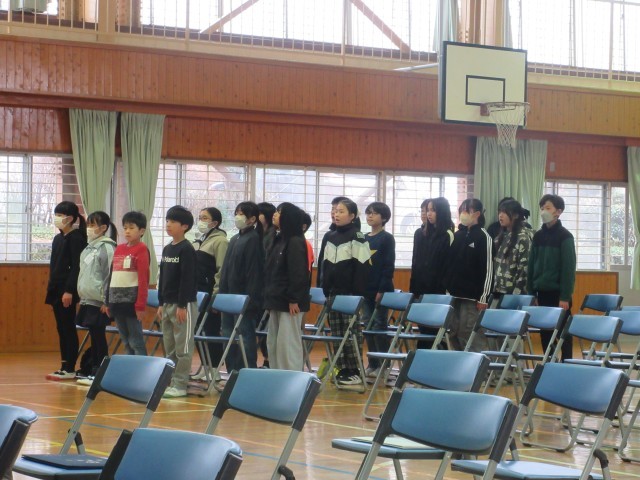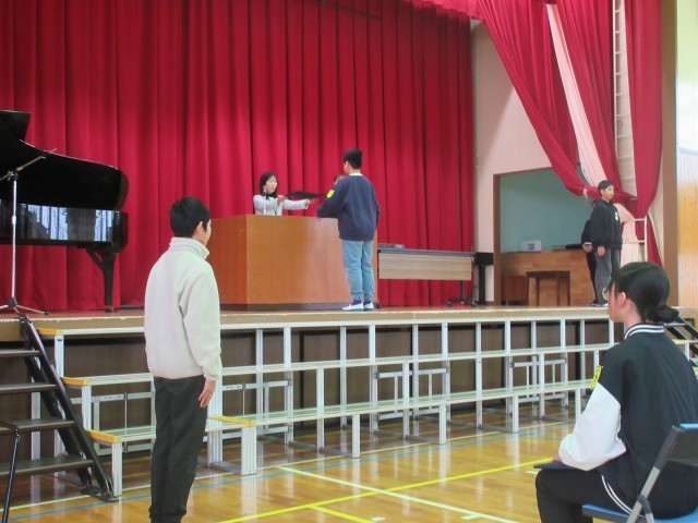 5・6年生と教職員で、来週行われる卒業式の総練習を行いました。