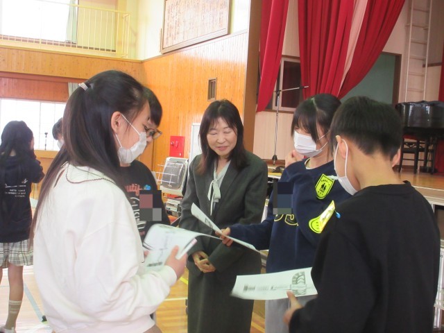 修了式のあと、校長先生からお話がありました。友達のいろいろな価値観にふれ、笑顔で話す6年生の姿が印象的でした。