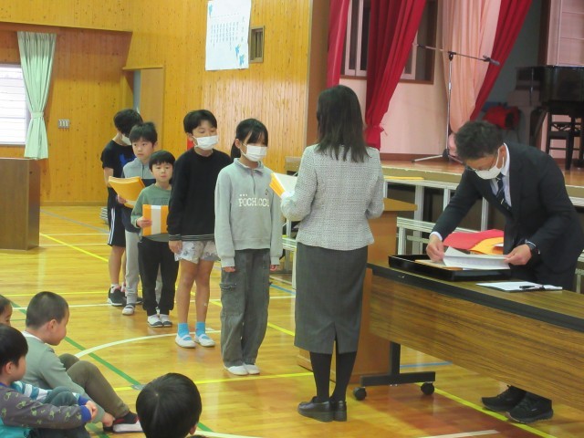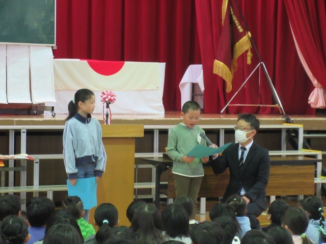 代表の人が、校長先生から修了証書をいただいたり、がんばったことを話したりしました。