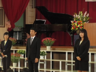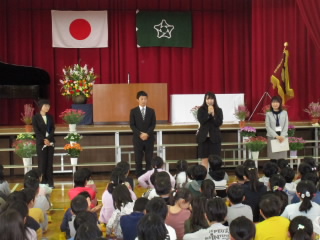 新しく深良小に来られた先生方をお迎えしました。子どもたちのあいさつの声や話を聴く姿勢も立派でした。
