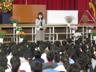1学期の始業式がありました。3年生と6年生の代表児童がめあてを発表しました。みんなで希望にあふれるスタートを切ることができました。