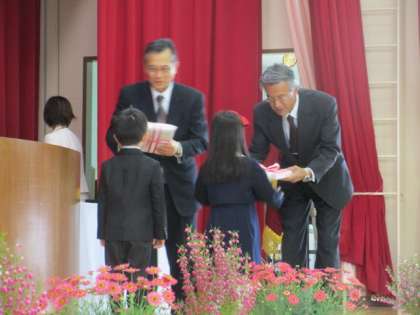 ピッカピカの1年生に教科書や黄色い帽子を授与していただきました。これから勉強するのが楽しみだね!安全に気をつけて元気に登校してきてね!