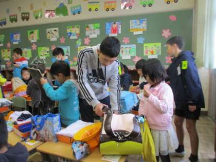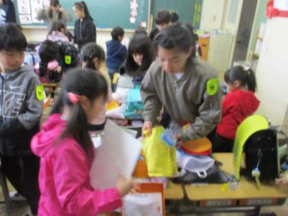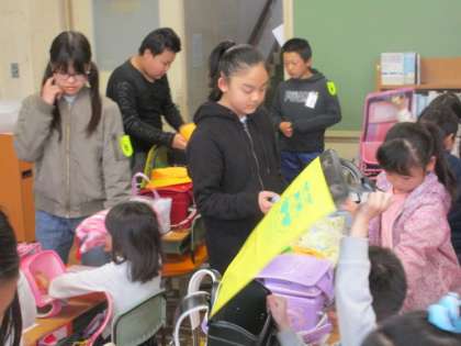 1年生にとっては初めての朝の支度です。さっそく6年生がお手伝いに来てくれていました。優しい6年生のお兄さんお姉さんです。おかげで朝の支度もばっちり!朝からあったかい時間となりました。