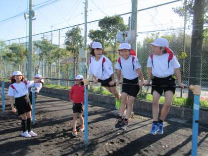 さわやかな朝です。素早く朝の支度を済ませ、運動場に向かう子どもたち。光の子タイムの前の時間も、元気いっぱいに活動しています。