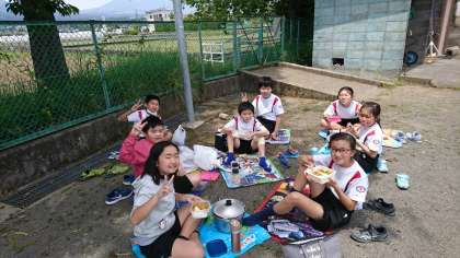 カレーライスとってもおいしくできました!! 自然教室のカレー作りもきっと上手くいくと思うよ。学校にいる先生たちもごちそうになりました。ありがとう!5年生のみんな!幸せの黄色いカレー、最高でした!