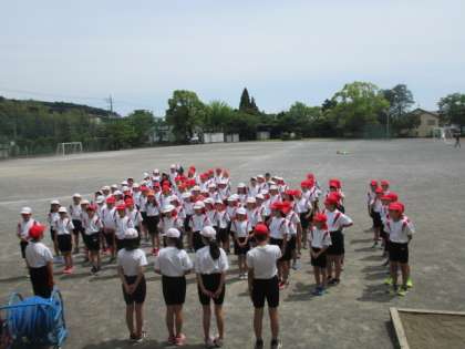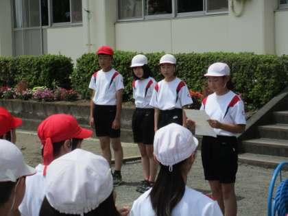 午後は5・6年生合同でミニ運動会です。6年生の実行委員の子たちが立派に進行していました。赤組対白組、みんなでもり上がろう!