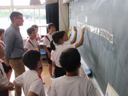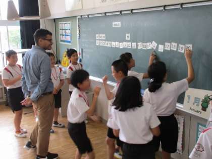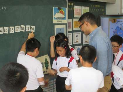 英語で自己紹介をするために、日付の言い方を学習しました。ゲーム形式の練習にみんな大盛り上がりでした。