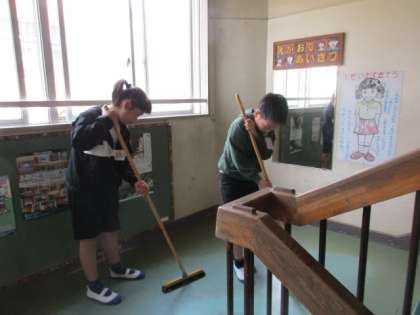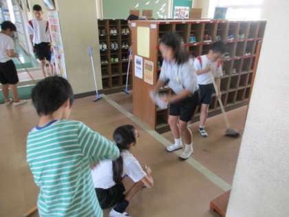 避難訓練が終わると、さっそく高学年の子たちが、昇降口や廊下などをきれいに掃除をしてくれました。学校のために自主的に行動する姿が素敵です。ありがとう!