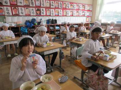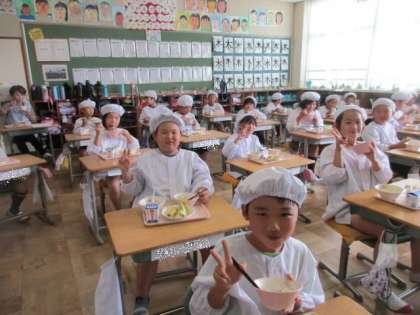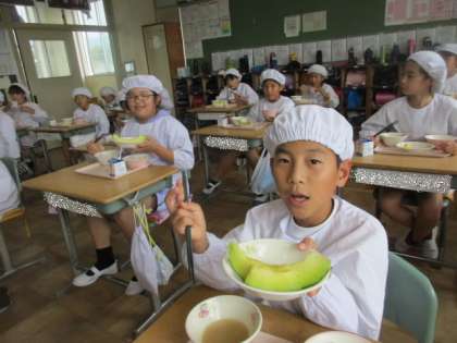 毎日おいしくいただいている給食。今日のデザートは…「クラウンメロン」でした!!