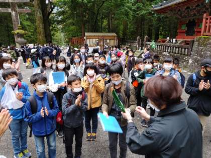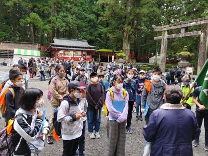 日光は少しひんやりしていますが みんな元気です このあと いろは坂へ移動です