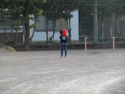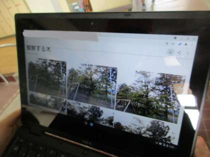 4年生が運動場で撮影していたので何をしているか尋ねたところ、「木を撮っていました。」とのこと。季節と生きものの学習で、年間を通して観察をしているようです。運動場の木も、何本かはだいぶ色づいてきました。