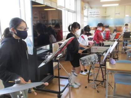 今日は全体で合わせています。1つ1つのパートの音を重ね合わせ、深良小吹奏楽クラブとしての音を作り上げていきたいです。