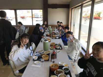 餃子館で昼食。子どもたちは「お腹すいた〜!」とバスの中でも言っていたので、大喜びです!