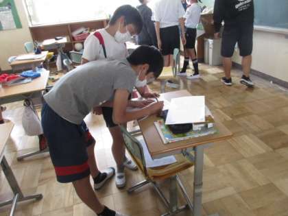 たてわりの日に向け、同じ班で集まり準備をしています。6年生にとって今年度初めてのたてわり。たてわりリーダーデビューです。下級生が楽しめる活動を目指し、がんばってください。