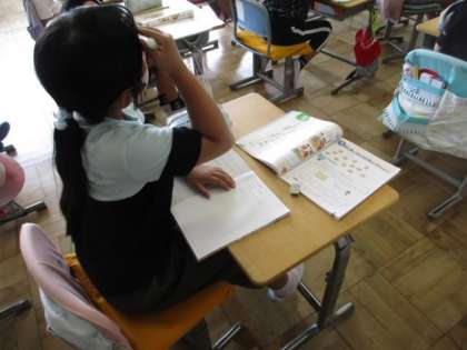 わり算は、九九を使って解いていきます。校長室での厳しい厳しい九九検定をクリアした皆さんなら大丈夫。自信をもって学習しましょう。
