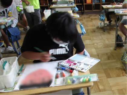 顔の色や髪の毛など、上手に混色して表現しています。水彩の良さが出ています。