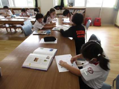百科事典の使い方を学んでいます。今は調べたいことがあるとインターネットで調べることが多いですね。もちろんインターネットは大変便利なツールですが、検索エンジンで上位に来たホームページの情報のみを頼りにしがちであったり、逆に多くのページがありすぎて考えがまとまらなかったりします。その点百科事典は、そのことについて大切なことが端的にまとめられていたり、説明や関連した写真・グラフが1つのページに描かれているので新聞などを作るときに使いやすかったりします。