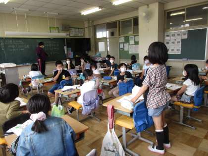 今日のわり算には、あまりがあるようです。「あまりは、割る数より小さくなります。」その通りです。よく気づきましたね。