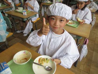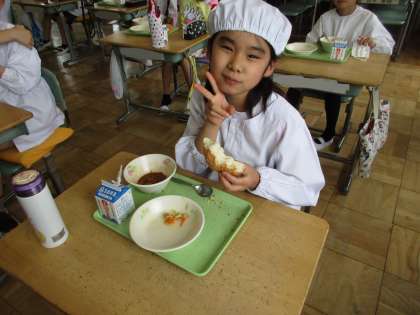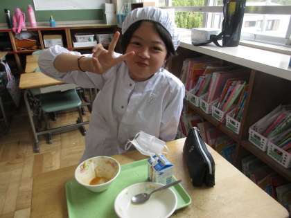 給食の時間に何回か撮影で回ったからでしょうか。ポーズの取り方が上手になってきましたねえ。