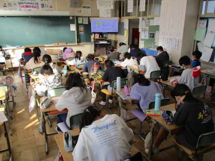 ただいま漢字大会に挑戦中です。教室に入ると中はしーんと静まり返っていました。子どもたちの背中から緊張感が伝わってきます。