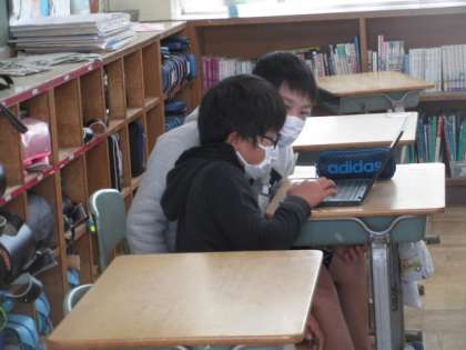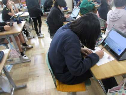 卒業アルバムの、個人ページを作っています。そろそろ清書でしょうか。少し緊張気味の6年生です。