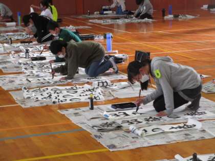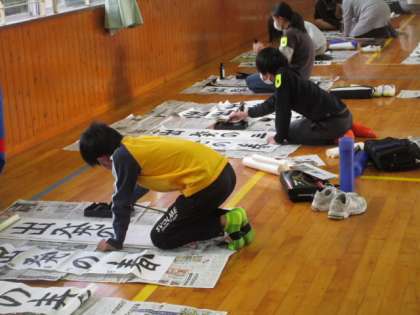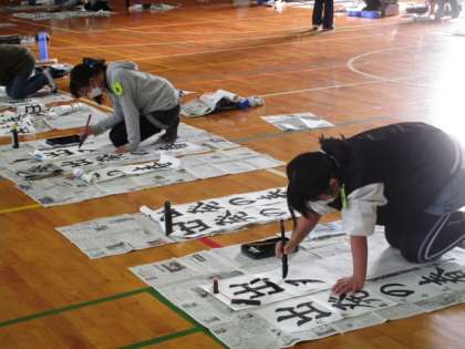 2度目の書き初めの練習です。今日も裾野市書道協会の方に来ていただきました。前回ポイントを教えていただいたので、そこに気をつけて書きましょう。