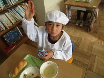 配膳が終わりました。さあ、おいしい給食をいただきましょう!
