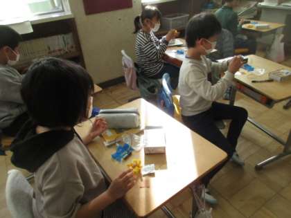 電気を通すときと通さないときのつなぎ方を比較しながら,電気の回路について学習します。配られたキットを使って、いろいろなことを調べてくださいね。