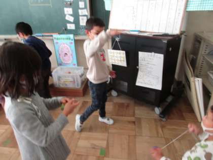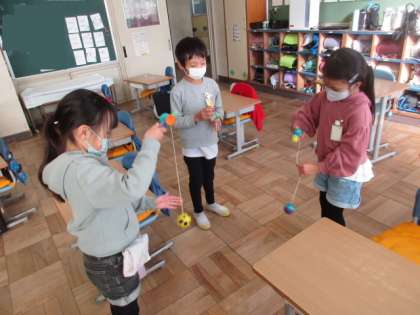けん玉、ヨーヨー、めんこ、昔の遊びは楽しいね。
