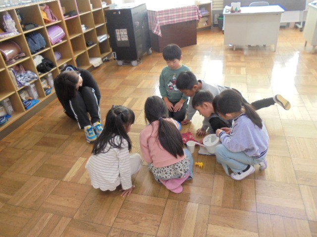 実際に水を使って、友達と考えたことを確かめ合っていました。