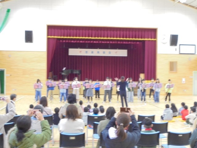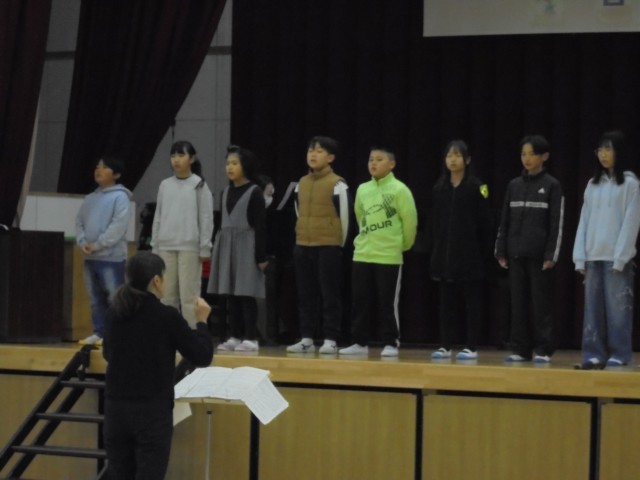 「もののけ姫」「いのちの名前」「人生のメリーゴーランド」を演奏した後、5・6年生で「いのちの歌」の合唱をしました。