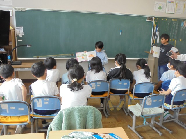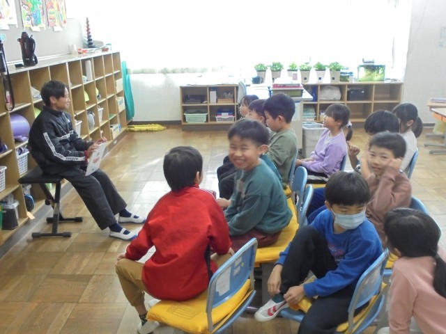 みんなの反応を見ながら、上手に読み聞かせを行っています。