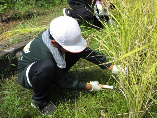 そんな声が出る中、5年生みんなで黙々と稲刈りを進めました。