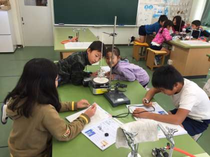 「水のすがたと温度」の学習です。水を熱すると何度まで温度が上がるのか、ふっとうってどういうことかを調べる実験です。