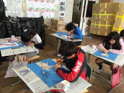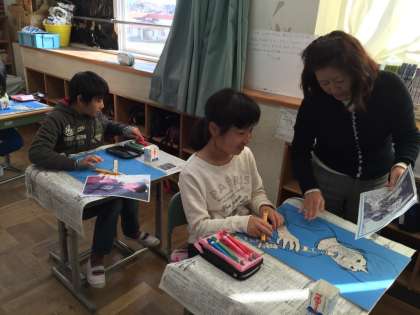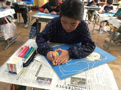 版画に取り組んでます。細かく丁寧に掘り進めています。