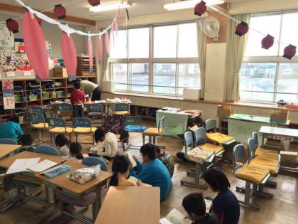 写真 3年生  もう準備万端のようですよ。読書中でした。