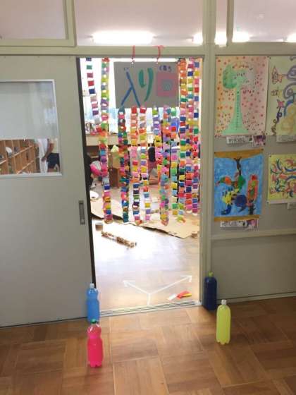 教室の入り口も中もきれいに飾っています。どんなお店かはお楽しみに。