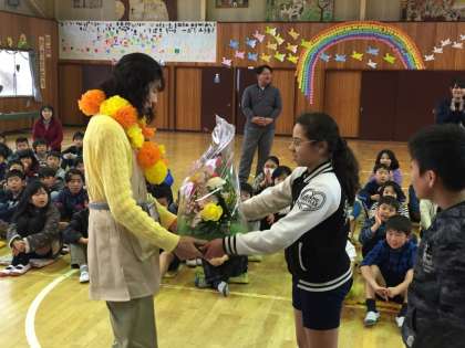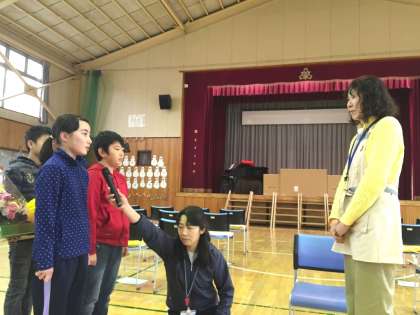 感謝の気持ちを込めて、昼休みに全校でお別れの会を開きました。