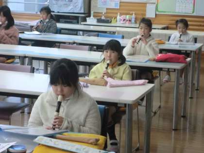 4年生は、体育館にて5・6年生の演奏を見学しました。4年生もあと少しで、リコーダー四重奏に仲間入りです。3年生は、ランチルームでリコーダー練習に励みました。