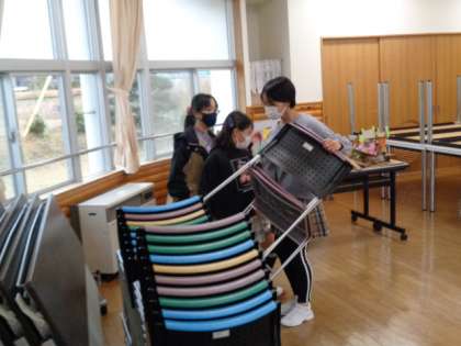 明日からボランティアのみなさんにご協力いただいて「書き初め練習会」を行います。今日は会場準備を6年生の子たちが進んで行ってくれました。自ら気づいて行動できる6年生のおかげで スムーズに会場が整いました。6年生のみんな ありがとう!