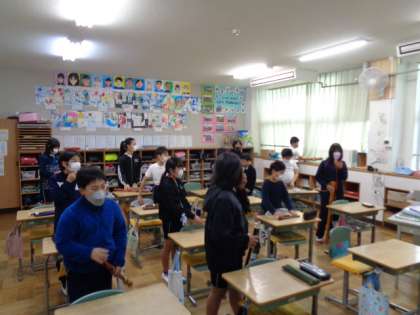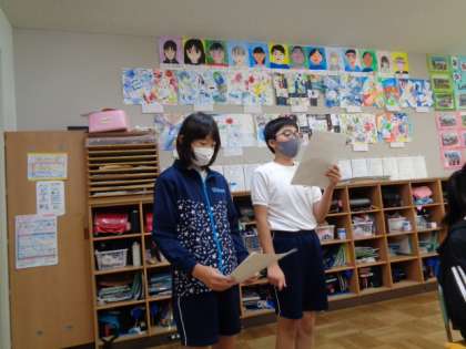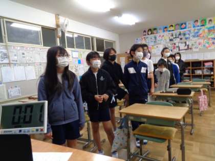5年生。リコーダー四重奏を披露したあと、しりとりに挑戦です。司会の子たちが上手に進行してくれました。みんなで盛り上がったね!