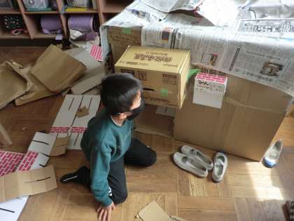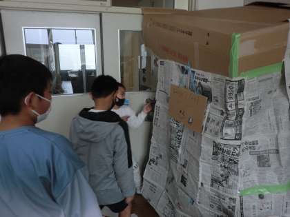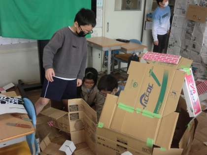 3年生の図工の様子です。今日は、グループで協力しながら、ダンボールで家を作る活動を楽しみました。みんなの生き生きとした笑顔がとても印象的でした。