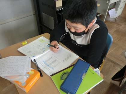 4年生が、算数のまとめの学習を行っています。次年度に向けて、分からないところがなくなるようにと、みんな集中して頑張っています。