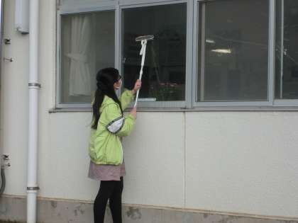 汚れている窓の外側も、きれいに掃除してくれました。自分の分担が終わると、他の掃除場所も気にして、協力して作業を進めていました。少しでも学校をきれいにしようという気持ちのこもった活動ぶりに、感謝の気持ちでいっぱいです。6年生、ありがとうございます。