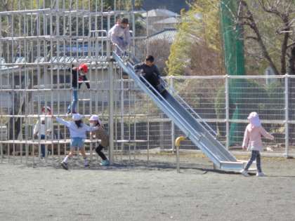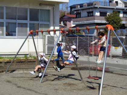 今日も春の陽気で気持ちがいいです。昼休みは元気いっぱいに遊んでいる子どもたちです。