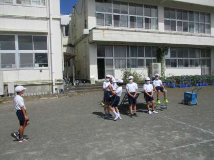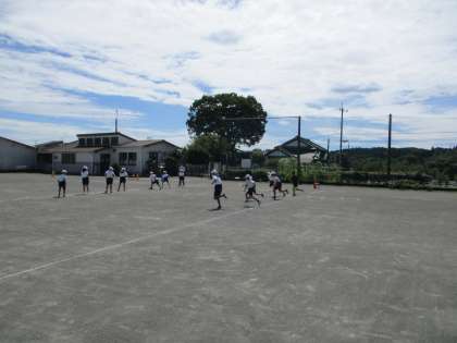 運動会に向けて、バトンパスを中心に、カラー別の練習を行いました。だいぶあつくなってきたので、途中で水分補給や室内での休憩をとるなど、熱中症の対策をしながら練習を進めました。