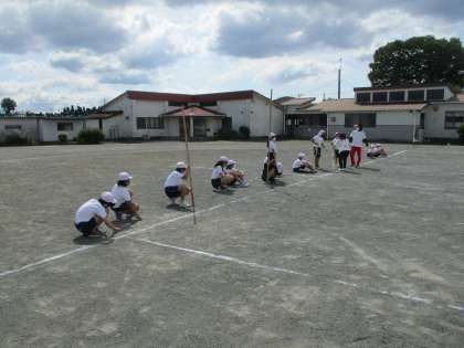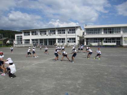 全校練習のあと、休憩を入れて高学年はもうひとふんばりです。高学年の団体競技、棒引き合戦の練習です。練習は、回数を重ねる毎に熱を帯びてきています。