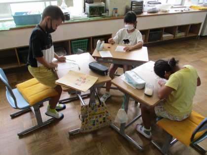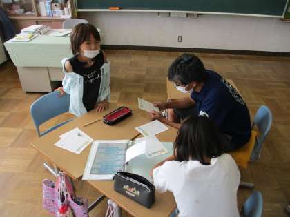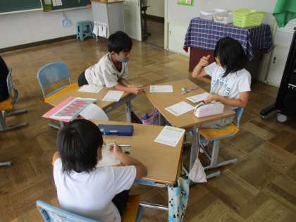 低学年のリーダー、3年生が運動会に向けて何か準備をしています。何をしているのでしょう?